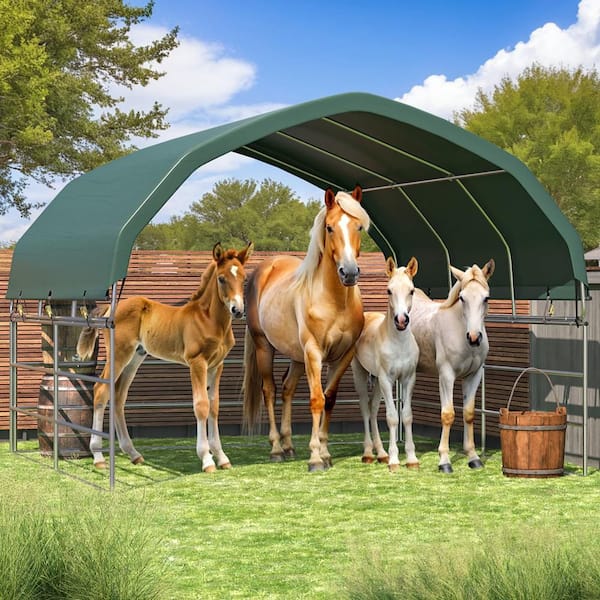 RanchPro 12 ft. x 12 ft. Forest Green Heavy-Duty Round Livestock Corral Shelter and Canopy Kit