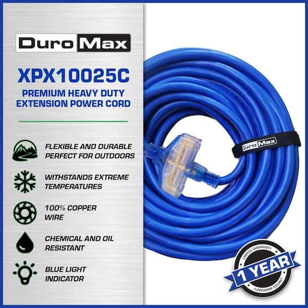 25 ft. 10/3 SJEOOW 15 Amp 120-Volt 1875-Watt Indoor/Outdoor -58° F - 221° F Triple Tap Blue Lighted Extension Power Cord