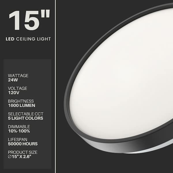 15 in. Modern Ring Slim Selectable LED Flush Mount Ceiling Light Fixture Matte Black For Kitchen Bedroom Living Room