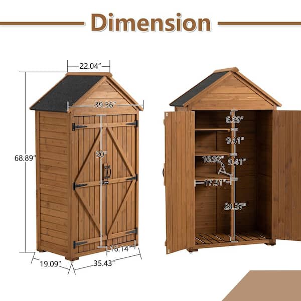 39.56 in. W x 22.04 in. D x 68.89 in. H, Wooden Freestanding Outdoor Storage Cabinet in Natural