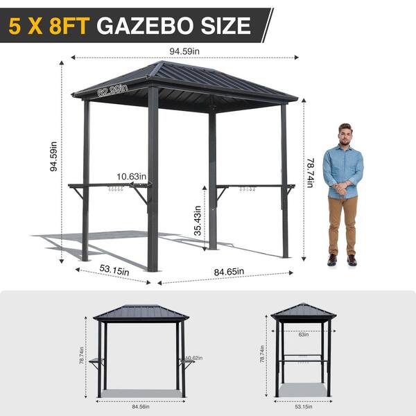 5 ft. x 8 ft. Outdoor Hardtop BBQ Gazebo, Permanent Galvanized Steel Pavilion with Sturdy Aluminum Frame for Patio