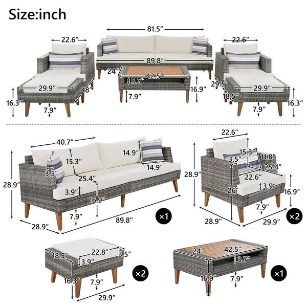 6-piece Wicker Outdoor Sectional, Patio Furniture with Cushions, Patio sofa set, Natural Rattan Beige and Gray
