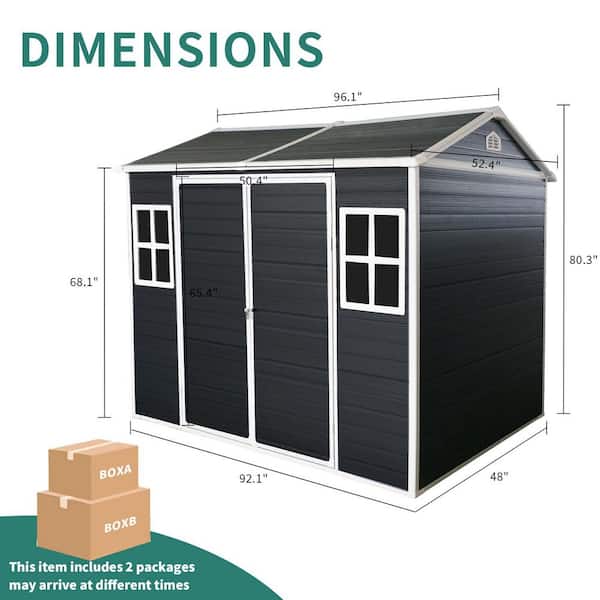 8 x 4 ft. Outdoor Resin Garden Shed with Floor and 2 Windows, Lockable Door, Black (30.7 sq. ft.)