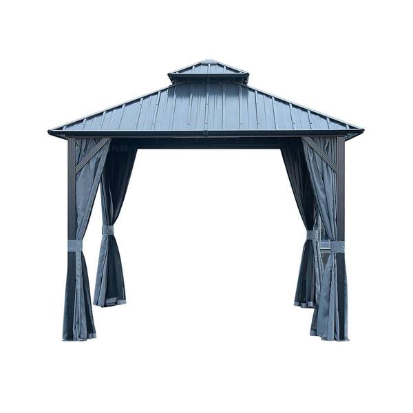 Agix 10 ft. x 10 ft. Grey Aluminum Patio Gazebo with Galvanized Steel Canopy, Privacy Curtain and Mosquito Net