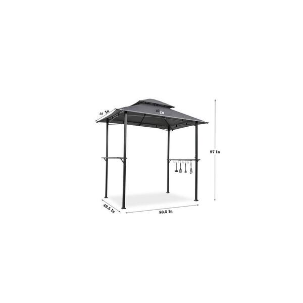 Agix 8 ft. x 5 ft. Outdoor Grill Gazebo Double Tier Soft Top Canopy and Steel Frame with Hook in Brown