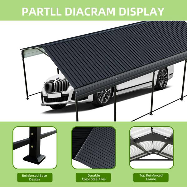 Bist, 12 x 20 ft. Metal Carport, Heavy Duty Outdoor Galvanized Car Shelter for Car Boat Truck and SUV, All Weather