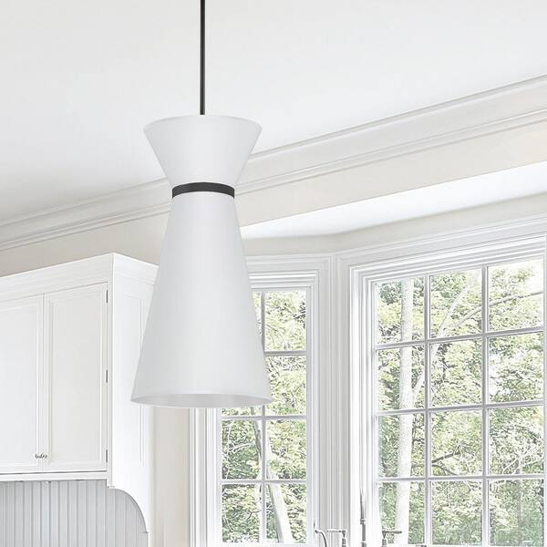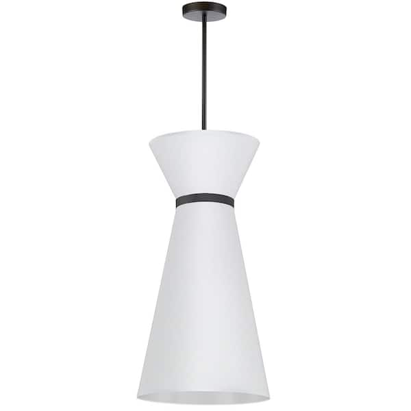 Caterine 1-Light Matte Black Shaded Pendant Light with White Fabric Shade