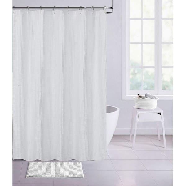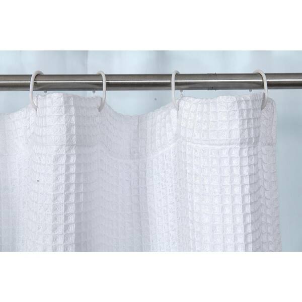 Imperial 70 in. x 72 in. White 100% Cotton Waffle Shower Curtain