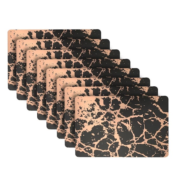Marble 18 in. x 12 in. Black/Rose Gold Cork Placemat (Set of 8)