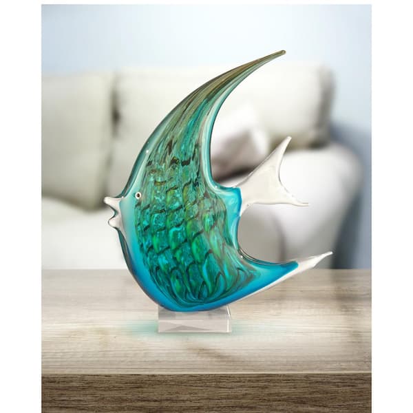 16 in. Aqua Fish Handcrafted Irregular Art Glass Figurine