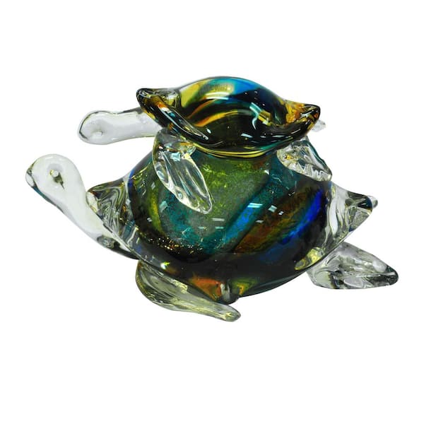 4 in. Colorful Sea Turtle Handcrafted Irregular Art Glass Figurine