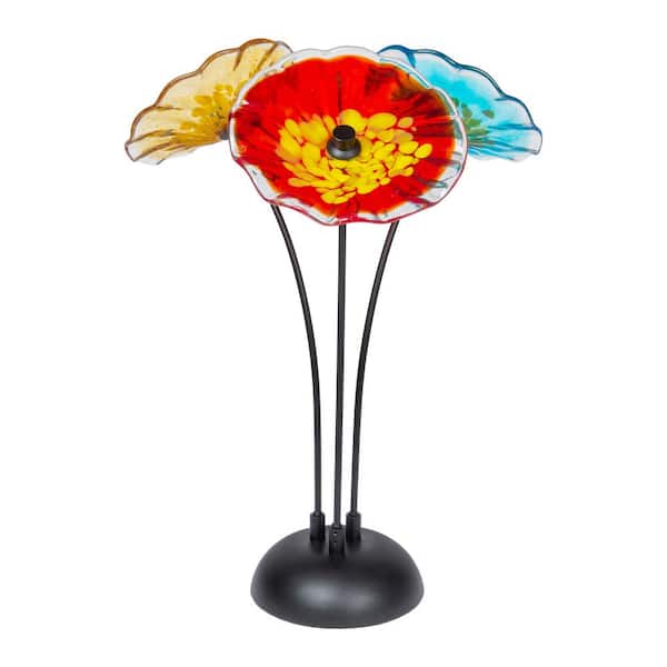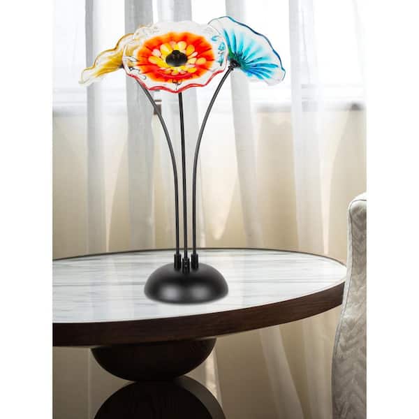 Fiore Bloom Multi Color HandBlown Art Glass 3Plate Sculpture with Metal Stand for Indoor and Outdoor 22 in. Tall