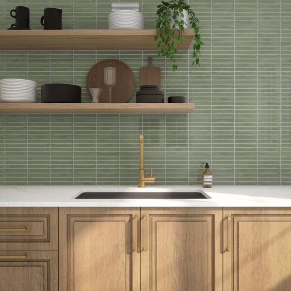 Artcrafted Aloe 2-7/8 in. x 2-1/4 in. Glossy Ceramic Straight Joint Mosaic Tile Sample