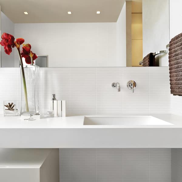 • White linear textured ceramic wall tile