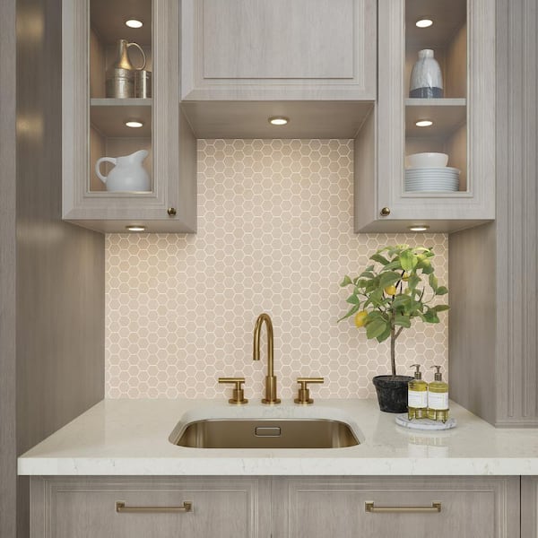 Perpetuo Elegant Beige 2-1/2 in. x 3 in. Glazed Ceramic Mosaic Tile Sample