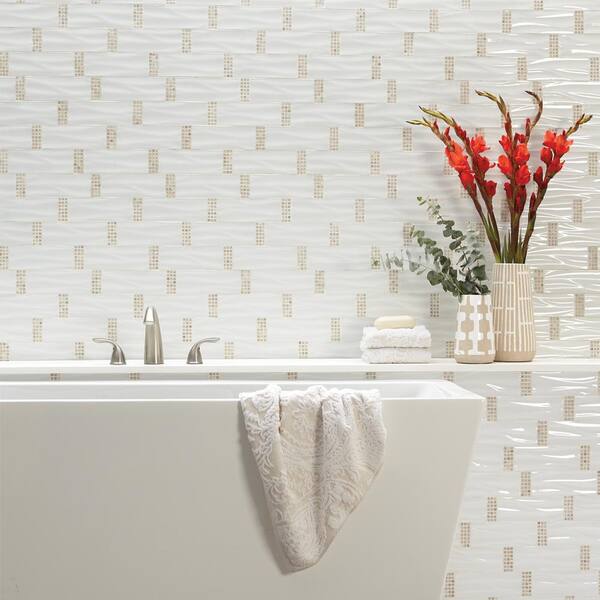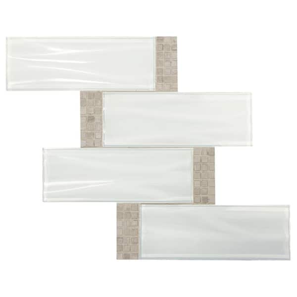 Premier Accents Snow White Wave 11 in. x 14 in. x 4 mm Glass and Stone Mosaic Wall Tile (0.73 sq. ft./Each)
