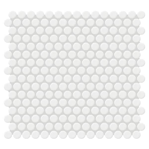 Restore Bold White Glossy 12 in. x 12 in. Glazed Porcelain Penny Round Mosaic Tile (10 sq. ft./Case)