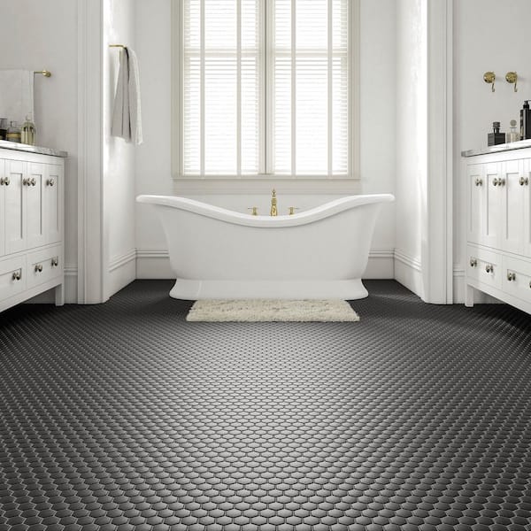 Restore Matte Black Hexagon 4 in. x 4 in. Glazed Ceramic Mosaic Tile Sample