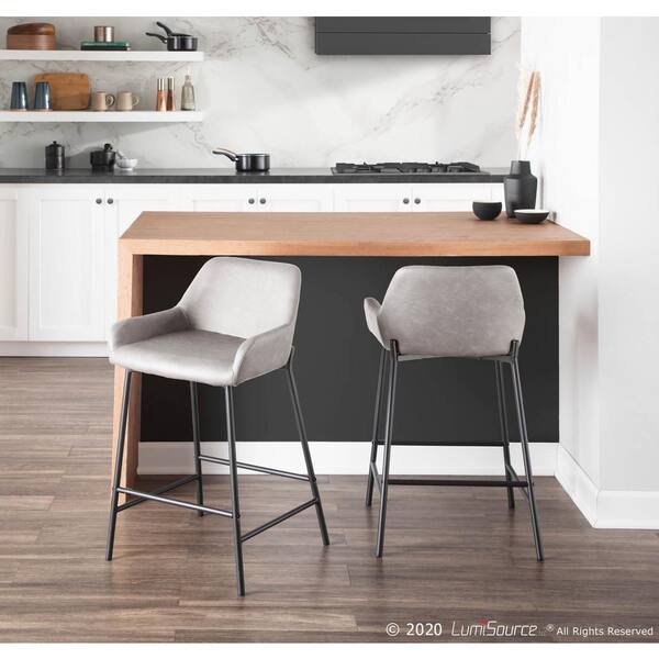 Daniella 24 in. Grey Faux Leather Industrial Counter Stool (Set of 2)