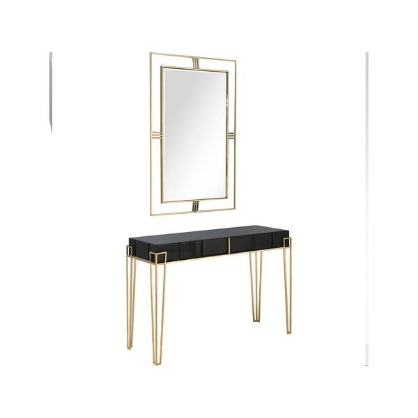 Daria 48 in. Black Rectangle Glass Console Table with Wall Mirror