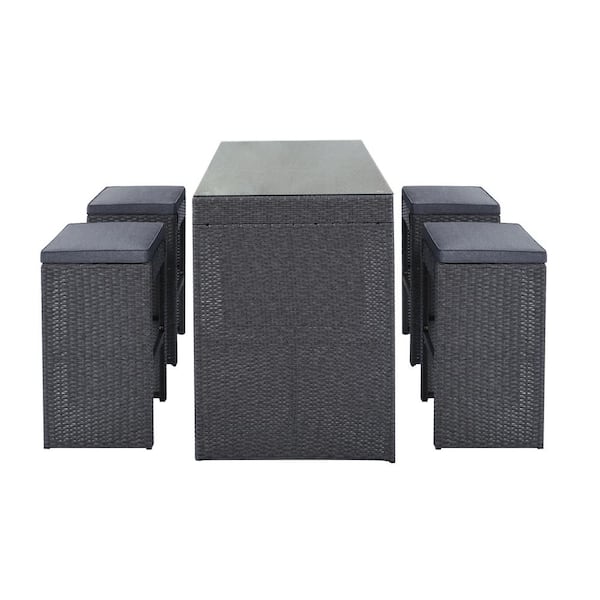 Dariel 5-Piece Gray Wicker Rattan Outdoor Dining Set with Gray Cushions
