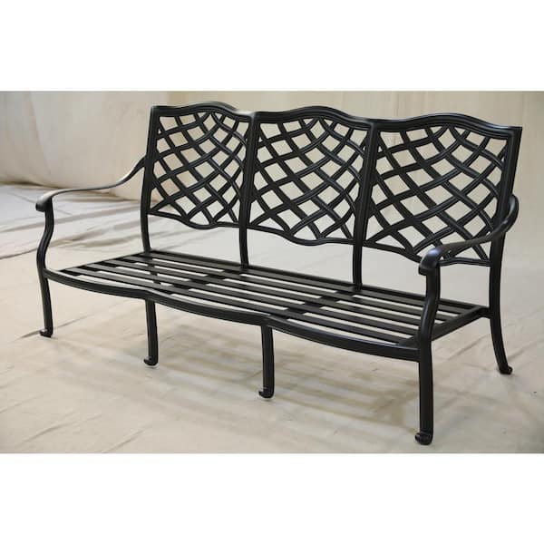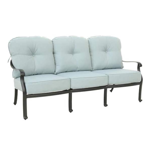 Dark Black Frame 3-seat Aluminum Outdoor Chaise Lounge Sofa with CushionGuard Light Blue Cushions