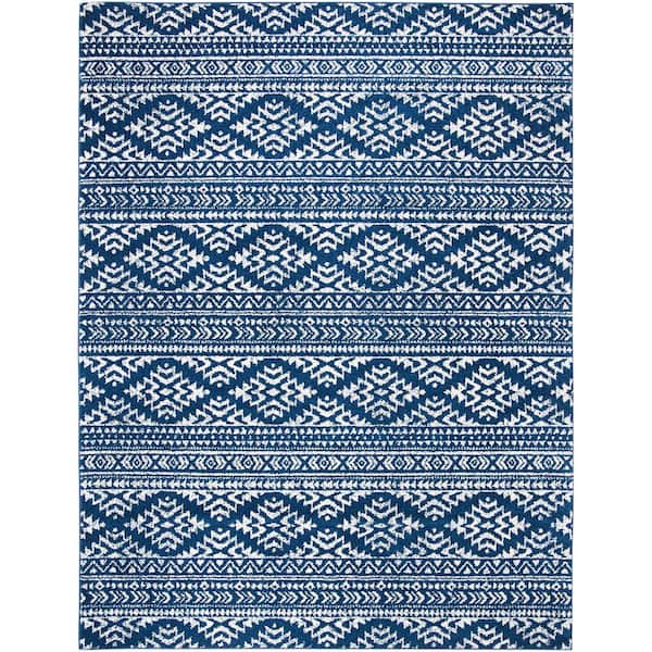 Dark Blue Polypropylene 8 ft. x 10 ft. Geometric Indoor Area Rug