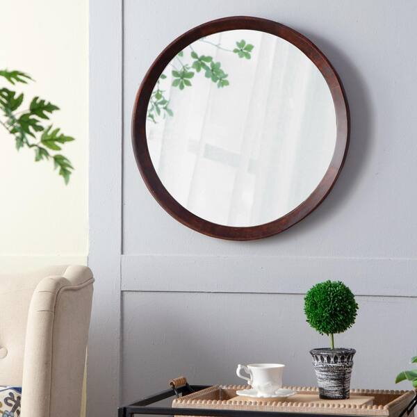Dark Brown 19.75 in. W x 19.75 in. H Round Wood Framed Mirror