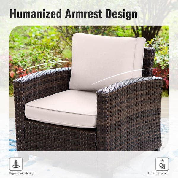 Dark Brown Rattan Wicker Outdoor Patio Loveseat with Beige Cushions