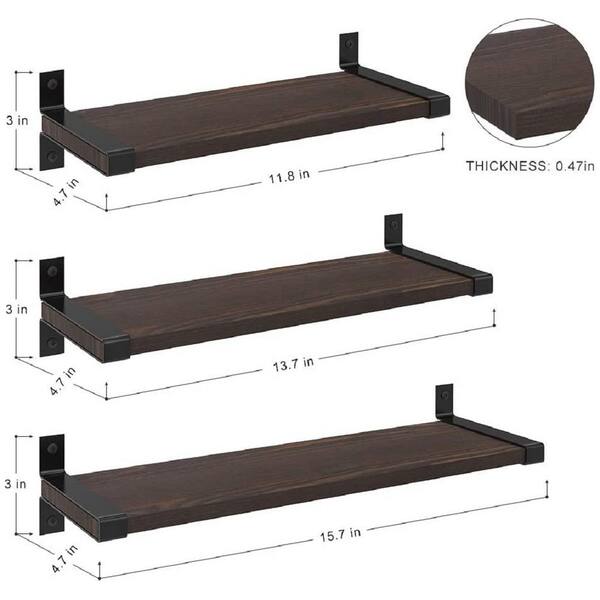 Dark Brown Wall-Mounted Frame Decorative Space Organizers, Sturdy And Stable Wall Shelf (Set of 3)