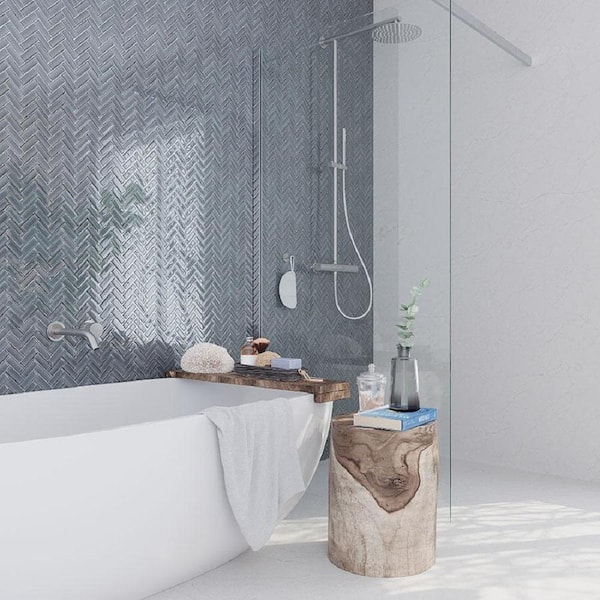 Dark Gray 4 in. x 5 in. Polished Herringbone Glass Mosaic Tile Sample (0.13 sq. ft./Piece)