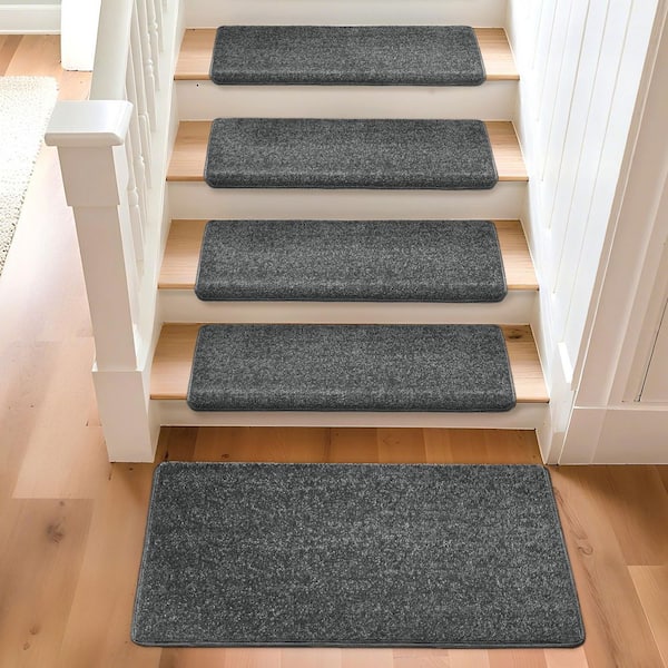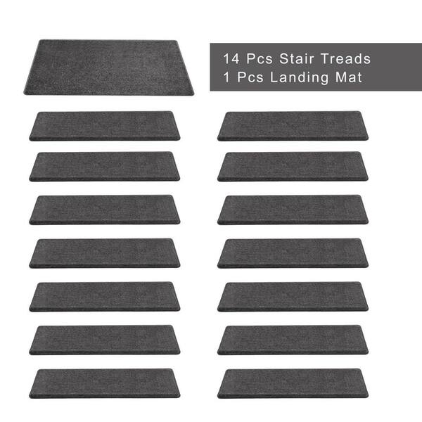 Dark Gray 9.5 in. x 30 in. x 1.2 in. Bullnose Polypropylene Non-slip Carpet Stair Tread Cover Landing Mat (Set of 15)