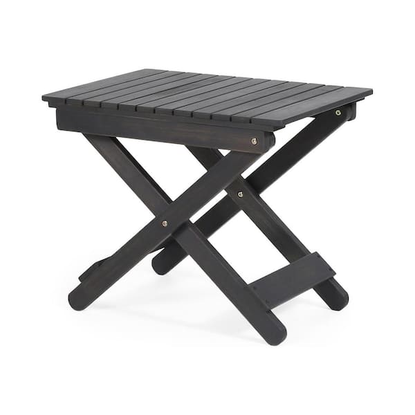 Dark Gray Acacia Wood Outdoor Side Table, Patio Folding Coffee Table for Backyard, Garden, Lawn, Porch