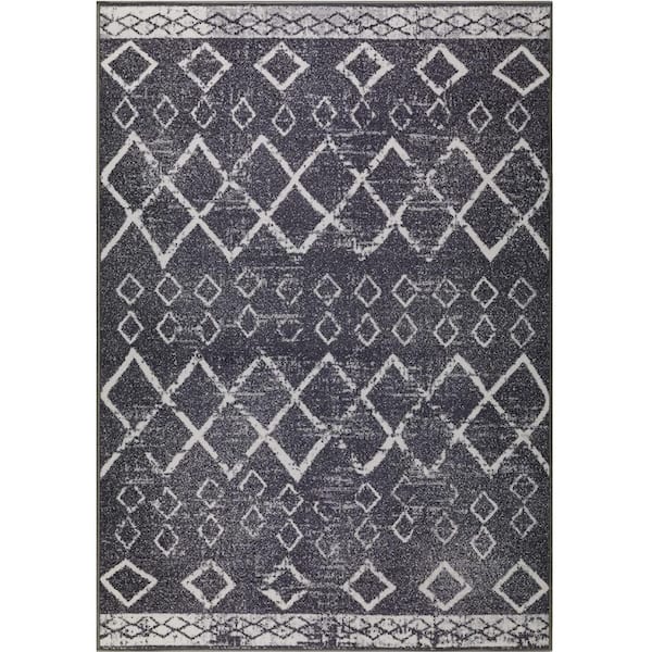 Dark Gray Polypropylene 4 ft. x 6 ft. Moroccan Indoor Area Rug