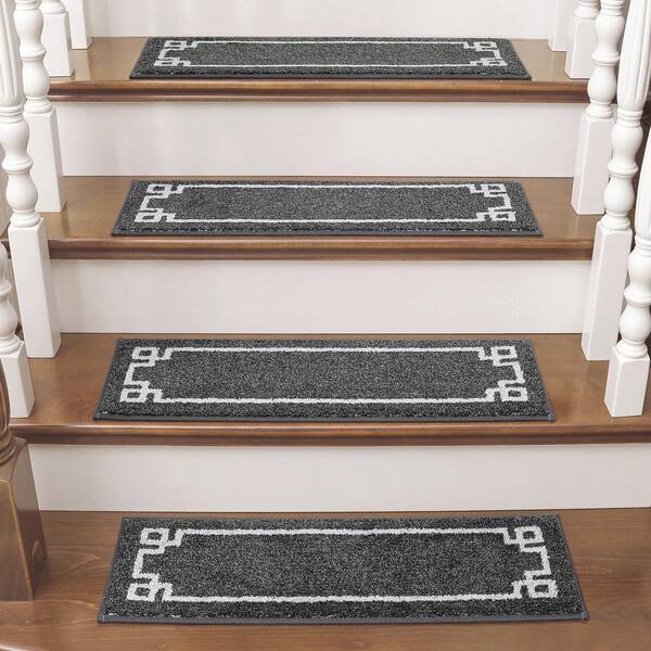 Dark Grey 9 in. x 28 in. Polyester Stair Tread Cover (Set of 15)