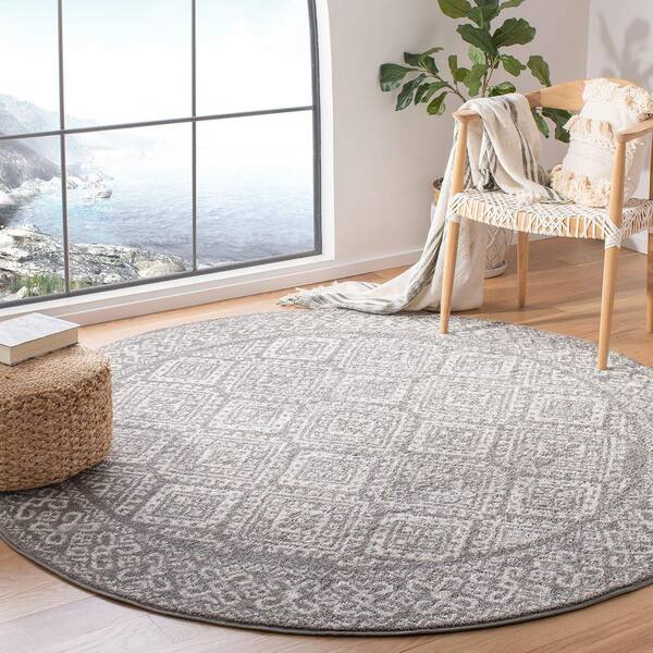Dark Grey Polypropylene 5 ft. x 5 ft. Solid Color Indoor Round Area Rug