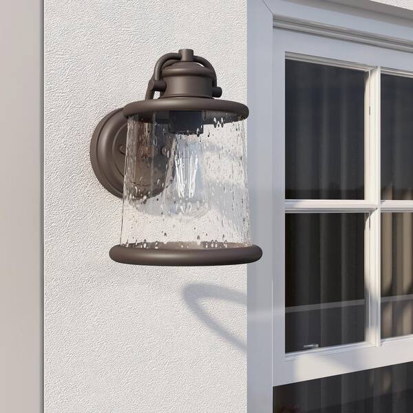 1-Light Dark Bronze Hardwired Outdoor Wall Lantern Sconce with seeded glass(1-Pack)