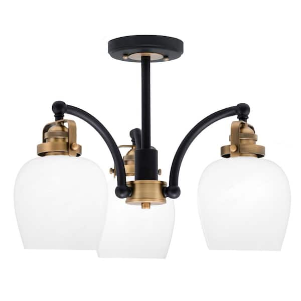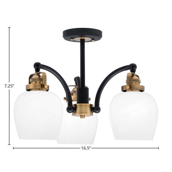 Decatur 16.5 in. 3-Light Black and Brass Semi-Flush with 6 in. White Marble Glass Shade No Bulbs Included
