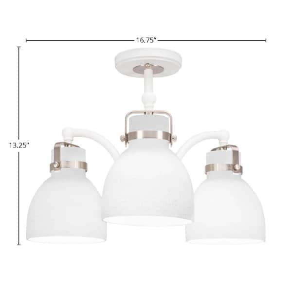 Decatur 16.75 in. 3-Light White and Nickel Semi-Flush with 6 in. White Muslin Glass Shade No Bulbs Included