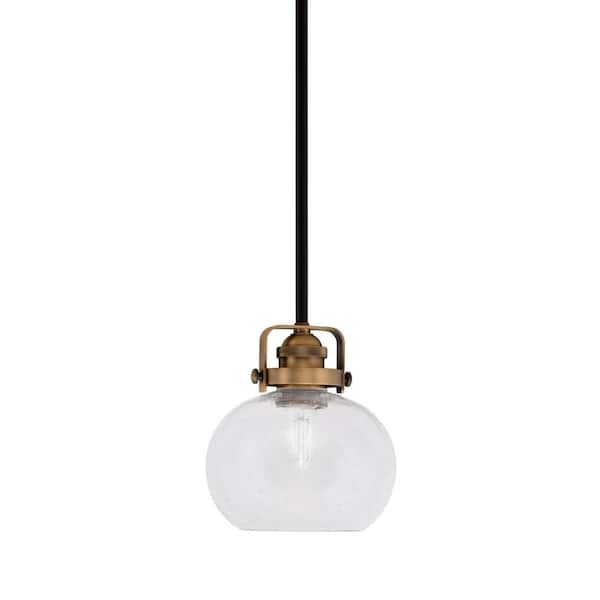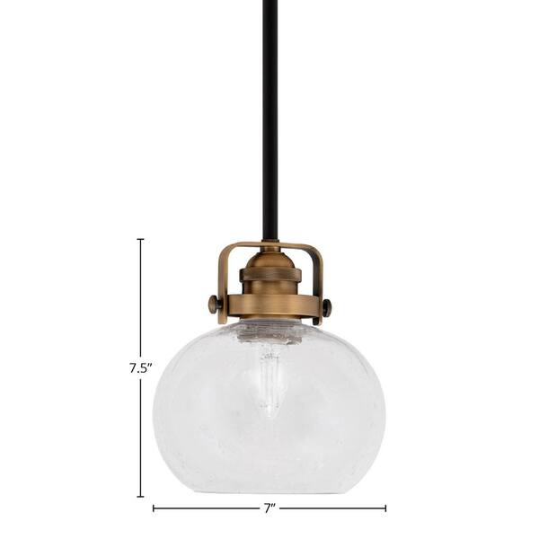 Decatur 60-Watt 1-Light Black and Brass Light Mini Pendant with 7 in. Clear Bubble Glass Shade, No Bulb Included
