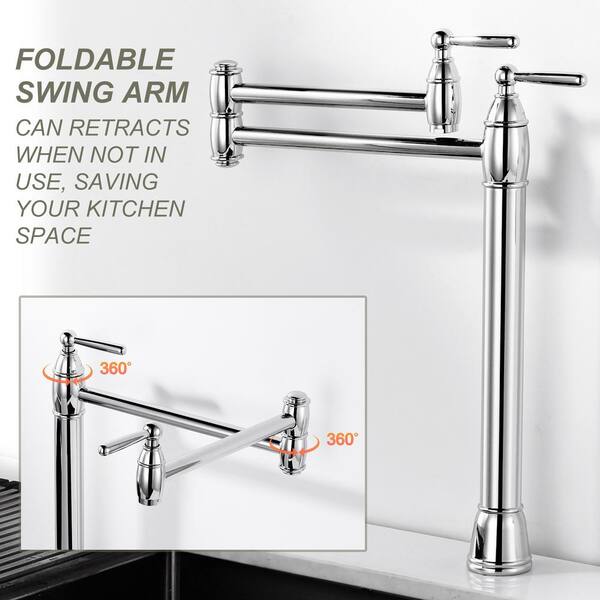 Deck Mount Pot Filler Faucet with Double-Handle in Chrome