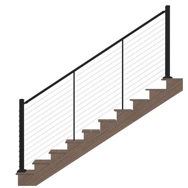 Cable Rail 8 ft. Textured Black Aluminum Stair Top Rail for Cable Railing System