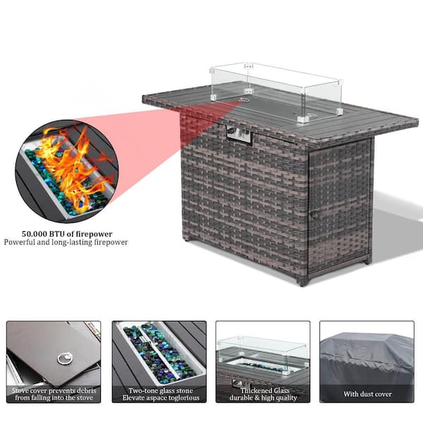 4-Piece Modern Wicker Outdoor Patio Conversation Sofa Seating Set with Metal Fire Pit and Beige Cushions