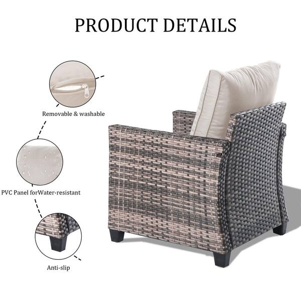 4-Piece Wicker Outdoor Brown Sofa and Ottoman with Beige Cushions