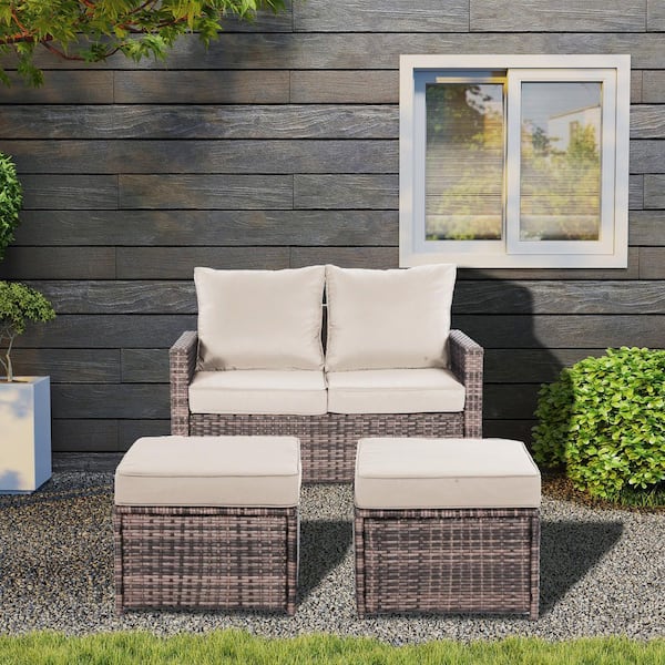 50 in. W x 28 in. H Outdoor Sectional Set with Ottoman and Beige Cushions