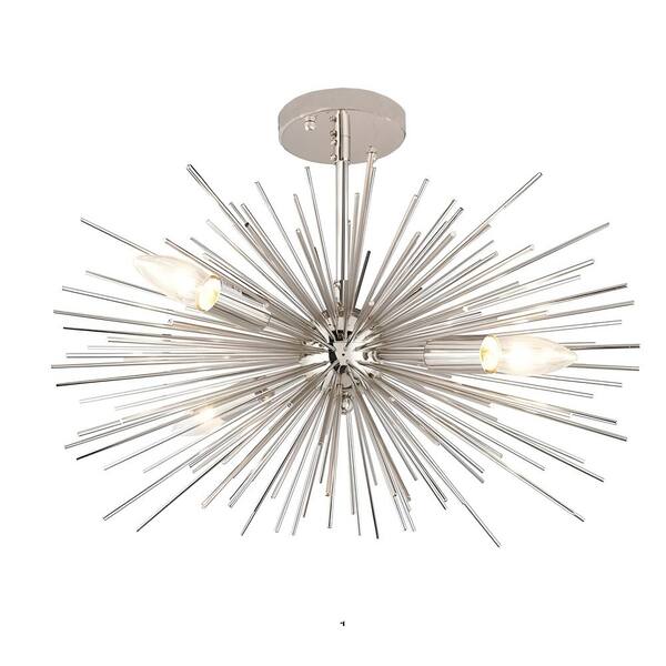Decomus 20 in. 4-Light Nickel Sputnik Semi-Flush Mount with No Bulbs Included