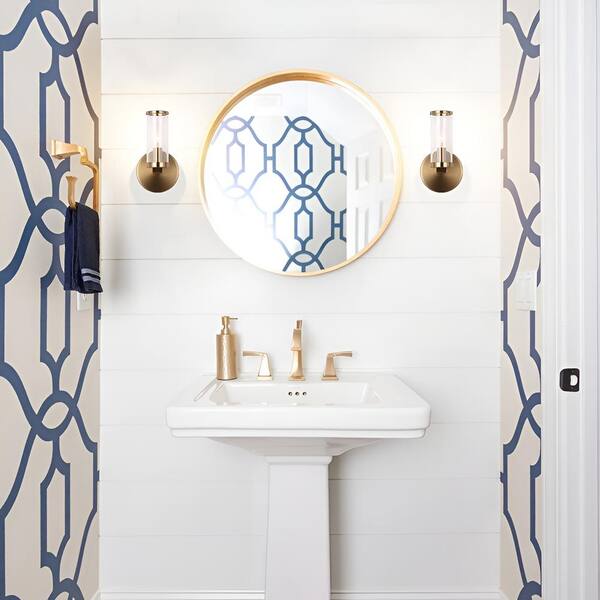 Kaiton 4.75 in. 1-Light Gold Modern Industrial Smart Home Enabled Wall Sconce with Clear Glass Shade