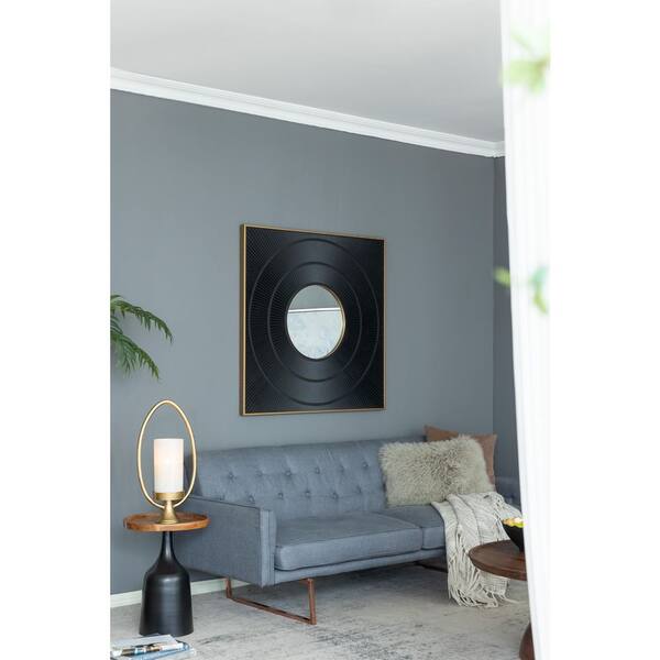 Decor Golden Black 39.4 in W x 39.4 in. H Square Wood Framed Mirror