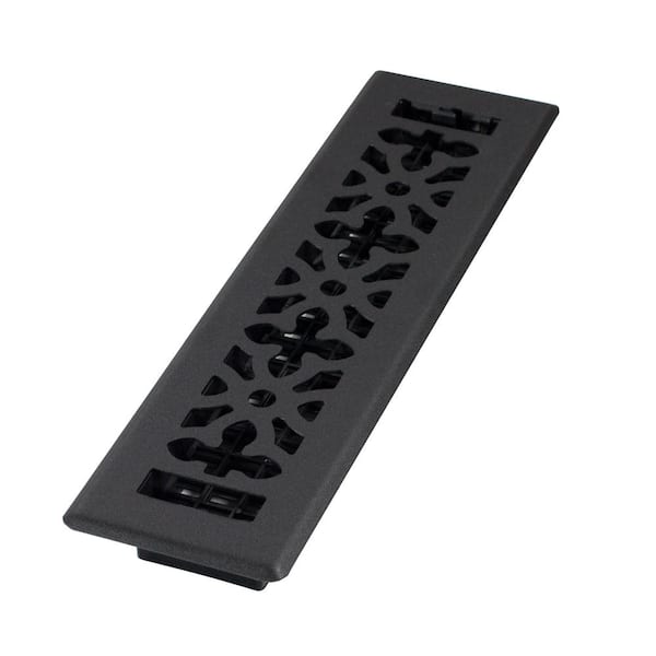 2 in. x 12 in. Gothic Design Black Steel Floor Register