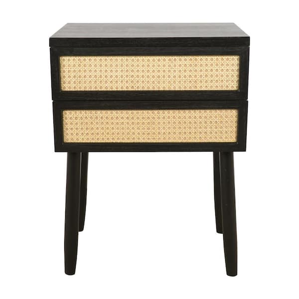20 in. Trenton Black and Rattan Square Wood Side Table with Storage Drawers